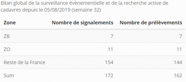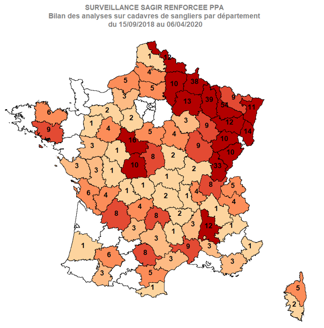Bilan de la surveillance PPA par le réseau SAGIR du 16/09/2018 au 06/04/2020