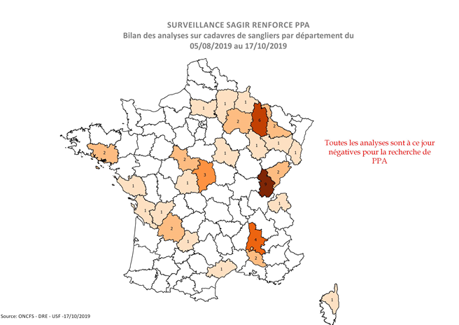 Bilan de la surveillance PPA par le réseau SAGIR du 16/09/2018 AU 17/10/2019