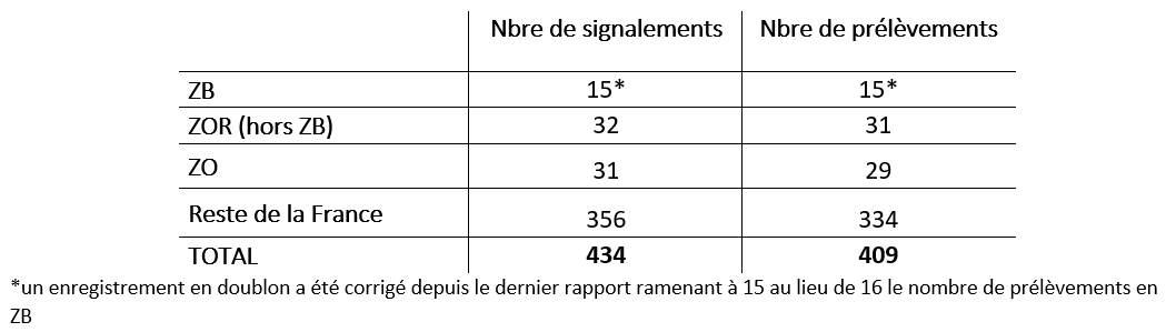 Bilan global de la surveillance évènementielle et de la recherche active de cadavres depuis le 16/09/2018