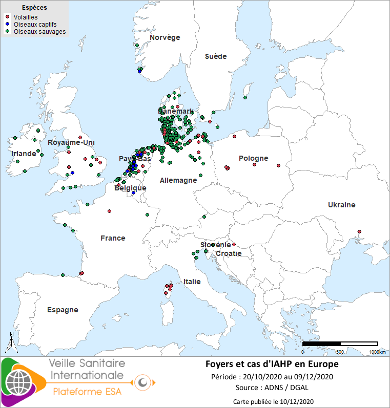 Suivi IAHP en Europe : point au 09/12/2020 inclus